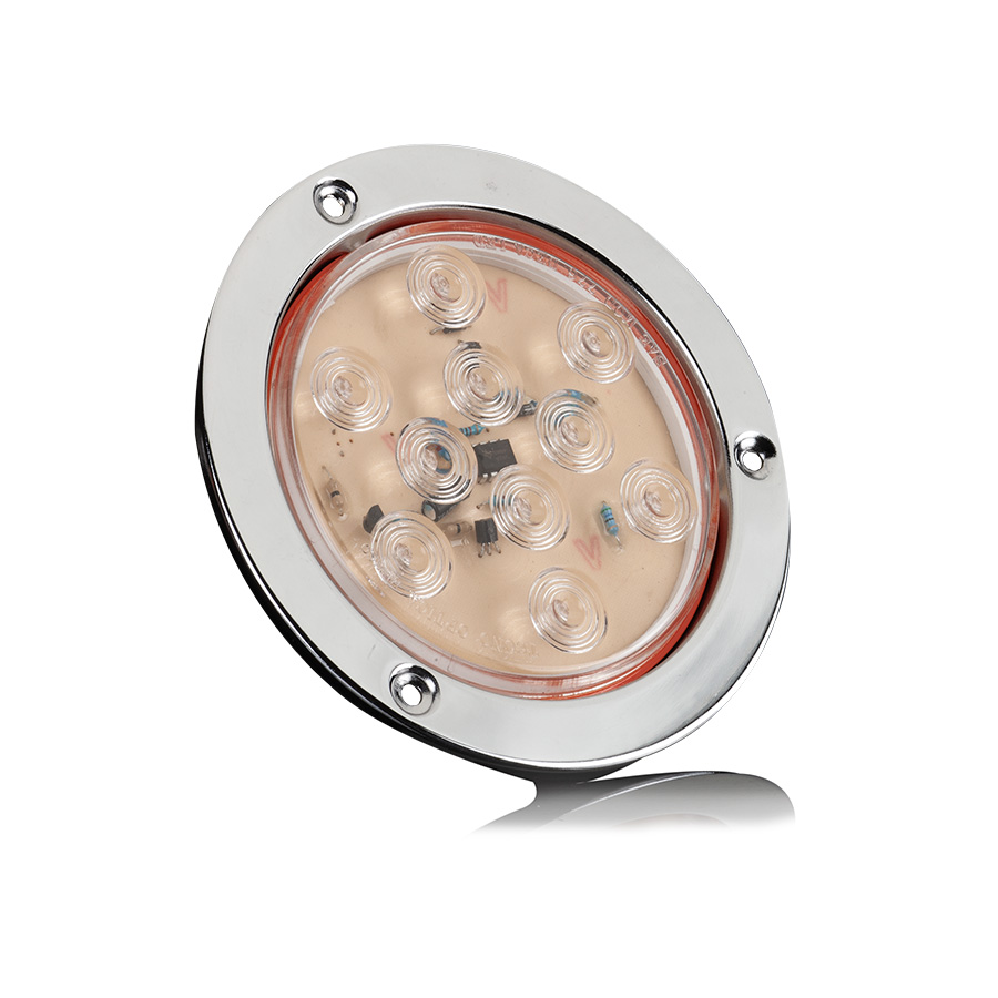 Luz trasera Redonda 4" 10 LEDs Asterisco Bisel Metálico Cromado