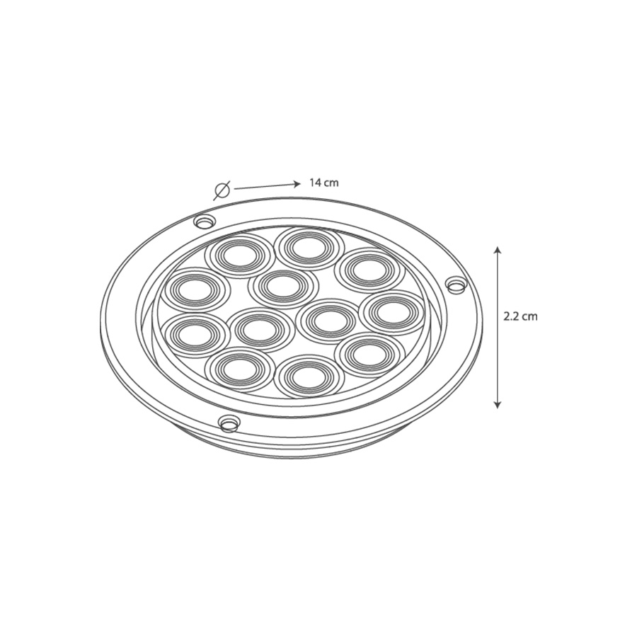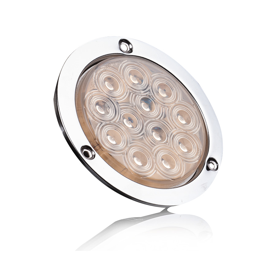 Luz trasera Redonda 4" 12 LEDs Bisel Metálico Cromado
