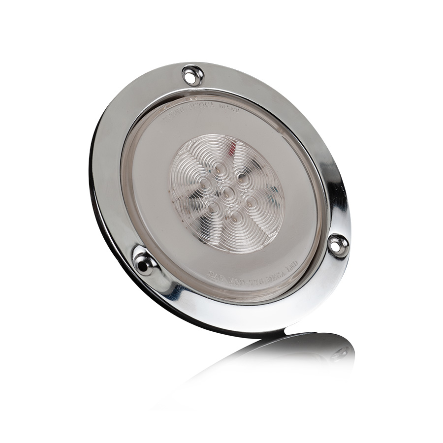 Luz trasera Redonda 4" 15 LEDs con GEL Bisel Metálico Cromado