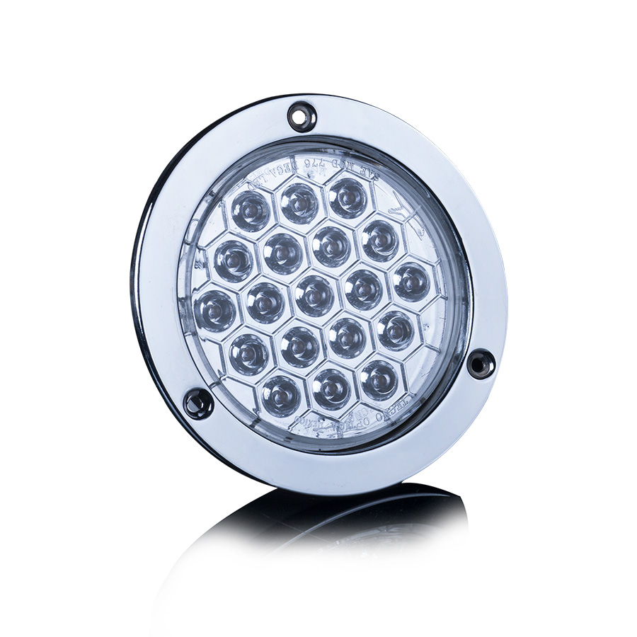 Luz trasera Redonda 4" 19 LEDs Bisel Metálico Cromado